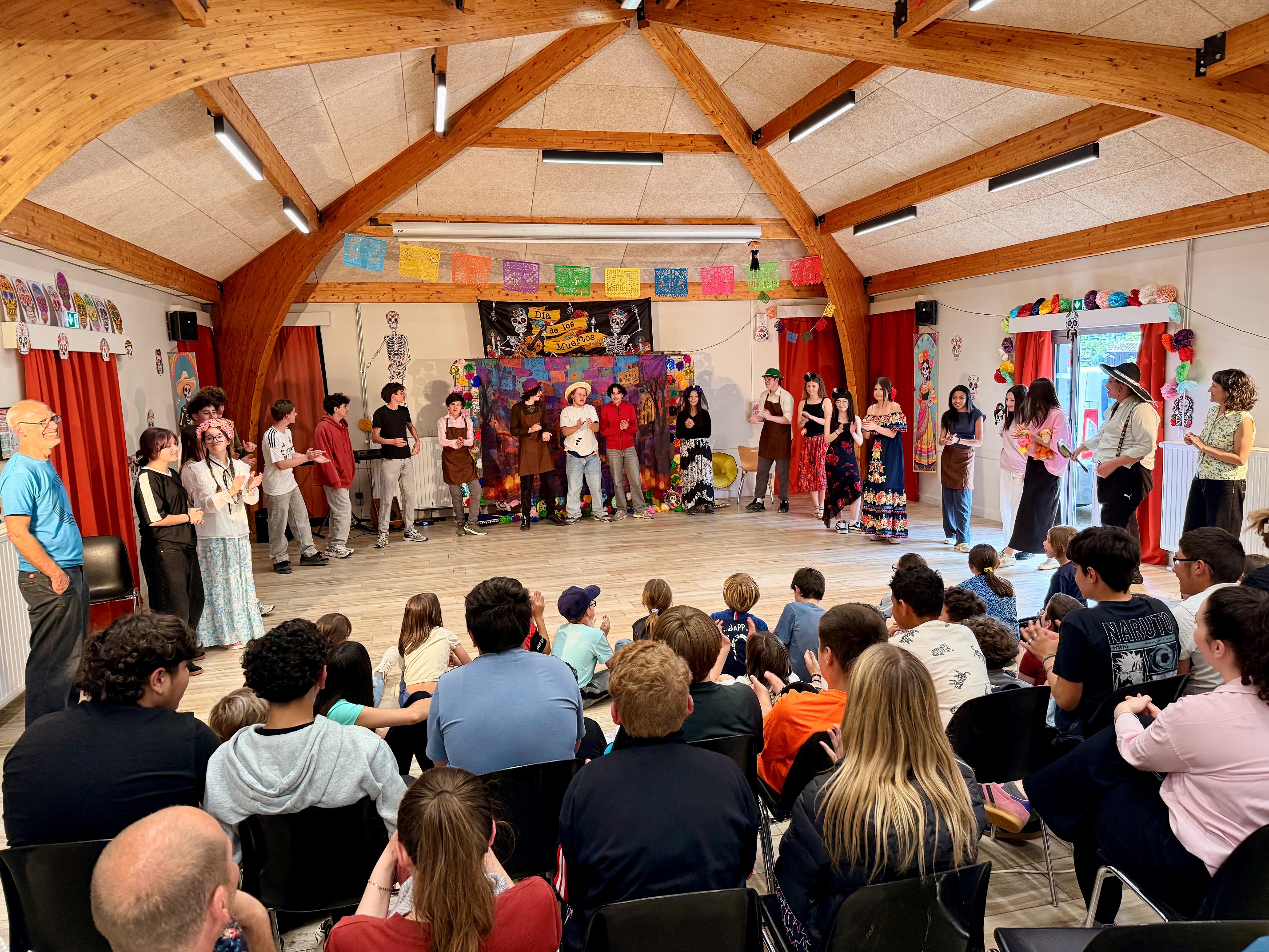 Le spectacle, entièrement en espagnol, mêlait avec harmonie théâtre, chants, danse et musique. Les élèves ont démontré un réel engagement et une belle maîtrise de la langue, tout en transmettant des messages forts sur la mémoire, la famille et la célébration des êtres chers disparus.